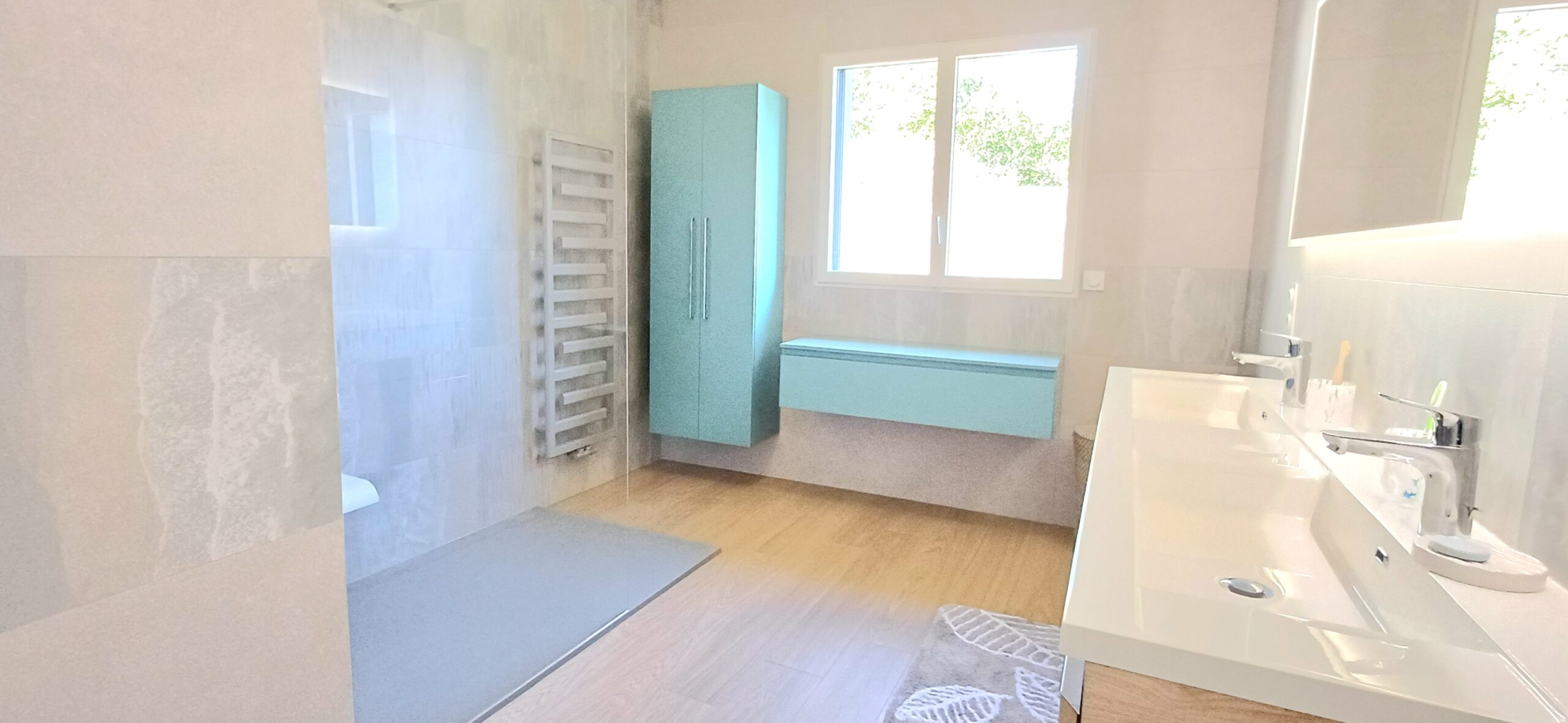 Une grande salle de bains tendance, une douche à l’italienne ou un receveur extra-plat pour remplacer votre vieille baignoire, un WC suspendu, une verrière dans votre salle de bains, …