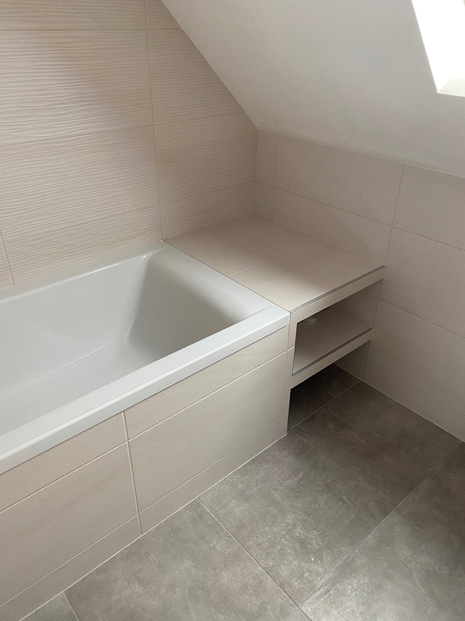 - La création d'un banc, dans le fond de la baignoire pour poser les produits de douche